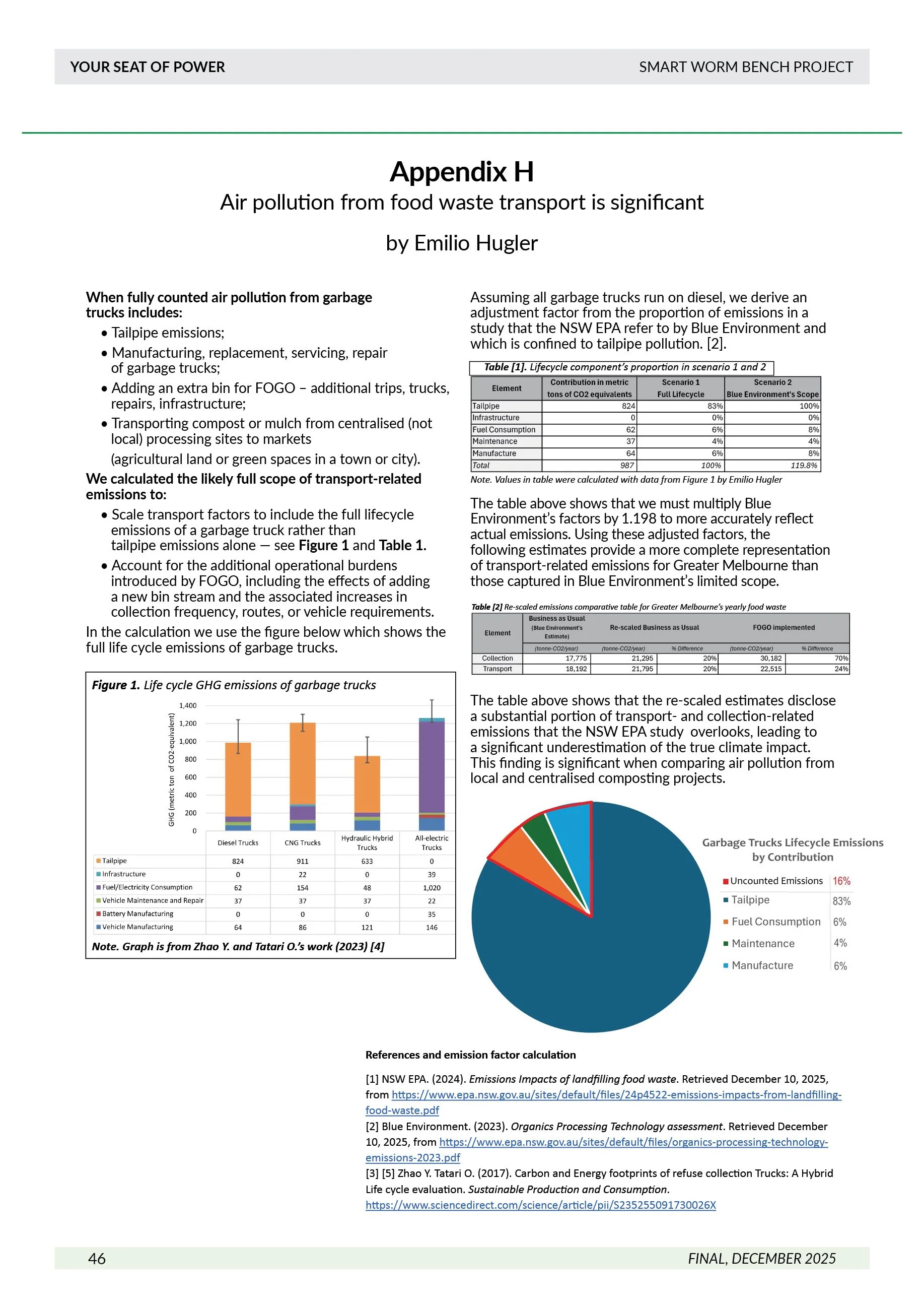 • Pollution by Sydney City Council from food waste in its garbage system with trucks, including its food waste recycling