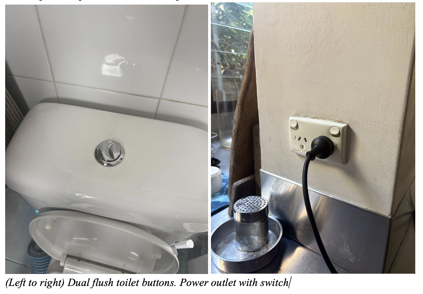 A small but big difference in daily impacts between Australia and the United States is that Australia has dual flush toilet systems and wall switches for electric outlets. While both of these are such simple technologies their implementation - required in households across the country - saves huge amounts of water and energy and also cuts household living costs.
