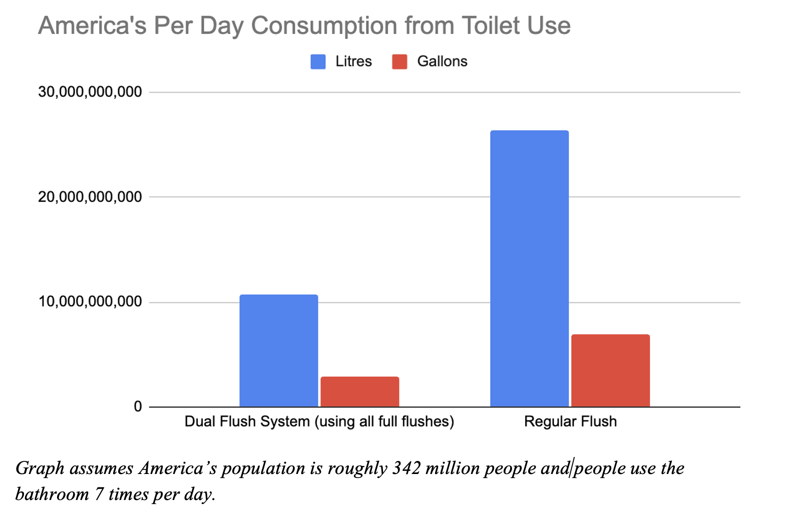 With America’s population being roughly 342 million people if we were to do the math having all toilets in America as dual flush systems we could save 3,766,945,100,000 litres of water annually. New housing can have these appliances, surely?